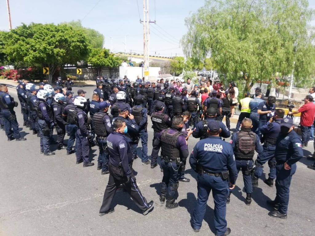 Luego de que no fueron recibidos ni escuchados, los comerciantes decidieron bloquear la avenida Salvador Nava, en ambos carriles, pero a los pocos minutos, un camión de la DGSPM llegó con más de 30 policías quienes desalojaron la manifestación que se estaba llevando a cabo.