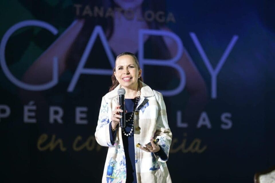 En el teatro de la ciudad del parque Tangamanga I, con un lleno total, Gaby Pérez expresó su alegría por regresar a tierras potosinas, exponiendo de forma magistral diversos temas relacionados con los procesos de duelo, superación personal, resiliencia y otras perspectivas implícitas cuando se pierde a un ser querido.