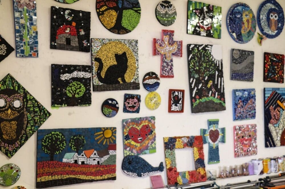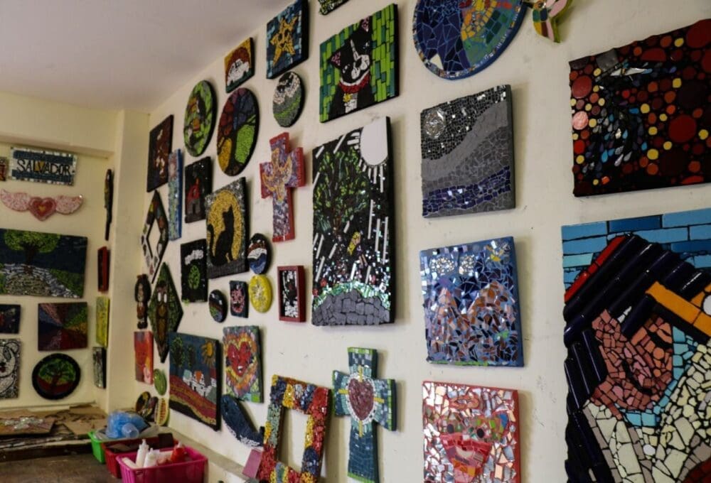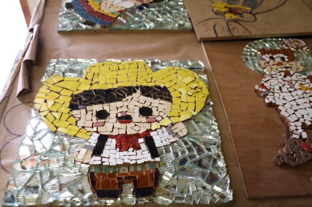 González Silva compartió que esta actividad comenzó a implementarse en el centro de asistencia para impulsar espacios de sana convivencia, donde las y los pequeños artistas plasman su imaginación, emociones y sentimientos en cada uno de los trabajos realizados con materiales como: piedra, cerámica, vidrio, espejo y gemas de diferentes formas y colores, lo que ha fortalecido su autoestima y potenciando su memoria y la concentración en sus clases.
