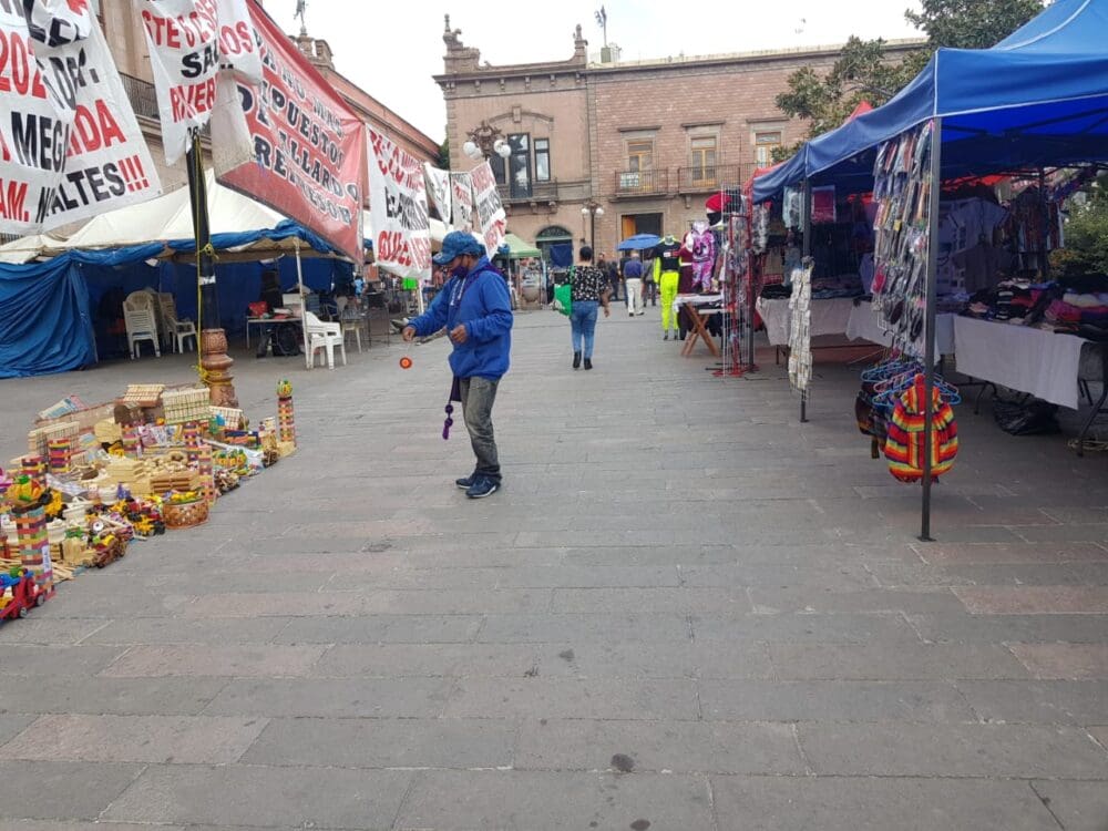 Desde hace días, un grupo de personas adheridas al Movimiento Pueblo Libre, se plantaron afuera de Palacio de Gobierno, como protesta en contra del Gobierno Estatal, sin embargo, optaron por extender puestos ambulantes en los alrededores de Plaza de Armas, con venta de ropa, cubrebocas, artesanías y comida. Esto, ha provocado la obstrucción del paso peatonal a quienes acuden a realiza compras o simplemente a caminar.