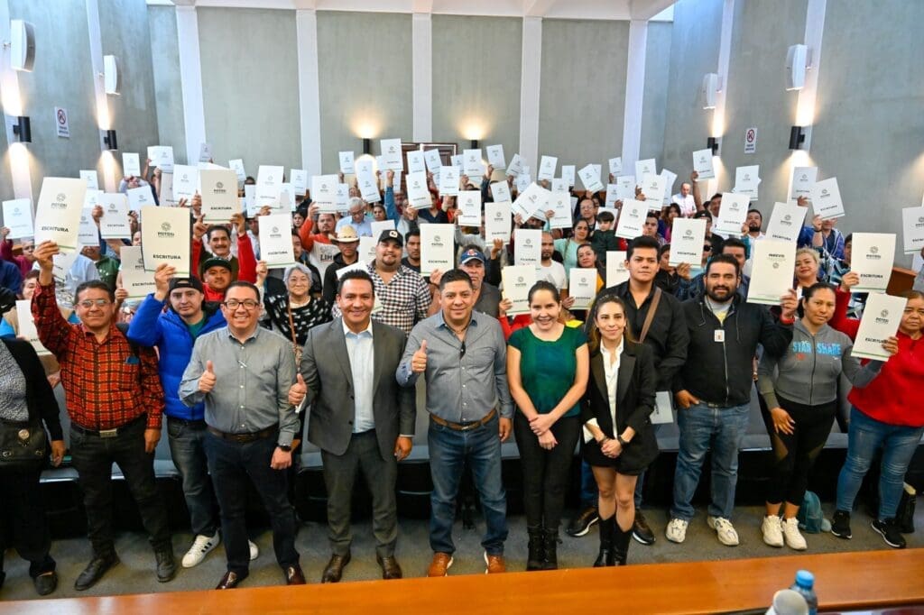 El titular del Poder Ejecutivo del Estado, Ricardo Gallardo Cardona, ratificó su compromiso por regular predios y colonias, pues en solo dos años de la actual administración se han entregado más de 2 mil escrituras, lo que genera mayor bienestar a las familias ya que acceden a diferentes servicios básicos y obras, lo que incrementará la plusvalía de sus propiedades.