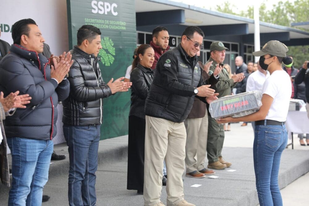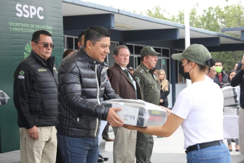 Posteriormente, el jefe del Ejecutivo y el General González Castillo, hicieron la entrega simbólica de un total de 318 uniformes completos consistente en camisola, pantalón, botas, gorra y cinturón, cuya inversión supera los 2.4 millones de pesos.
