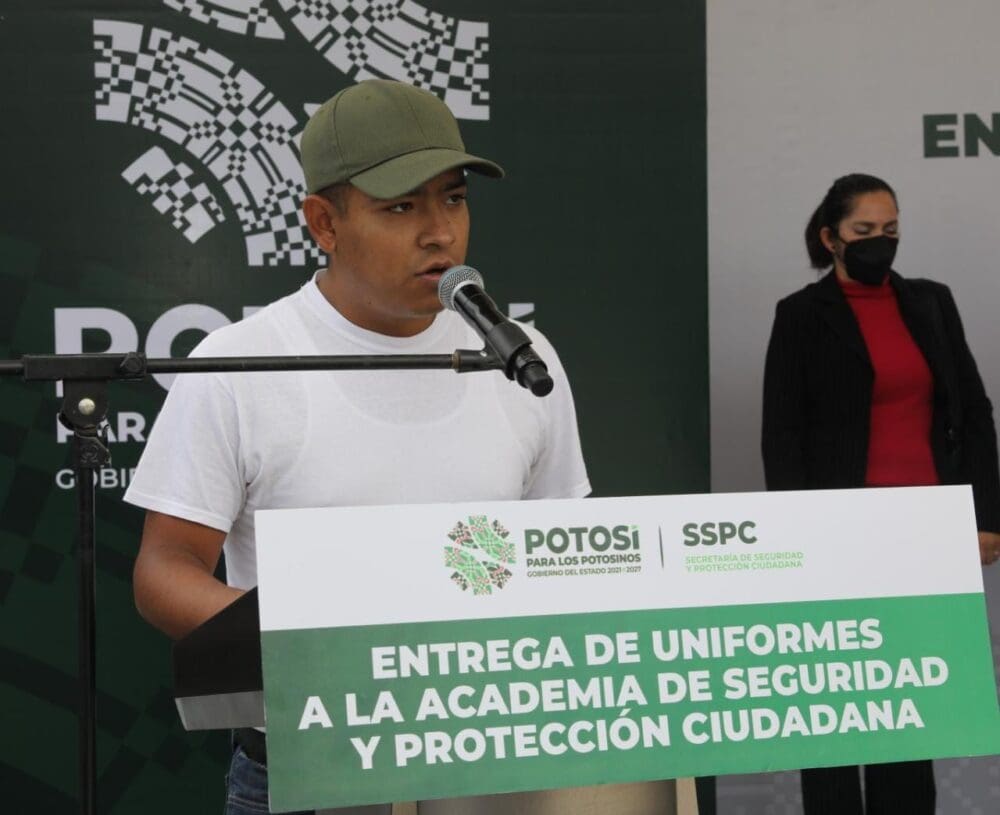 En las instalaciones de la Academia, y acompañado por el General Guzmar Ángel González Castillo, secretario de Seguridad Estatal, externó su beneplácito por contar después de muchos años con perfiles mejor preparados de acuerdo a los estándares que marca el Sistema Nacional de Seguridad Pública, y dijo que esta primera fase de contratación permitirá reforzar la prevención de los delitos a lo largo y ancho del territorio potosino, entrando en funciones a partir del próximo 1° de diciembre.