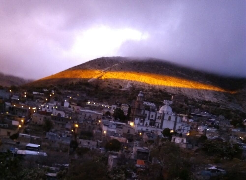 Una reciente fotografía captada por un habitante de este pueblo fantasma, quien es guía de turistas, ha levantado opiniones diversas en torno a su veracidad, pues muestra una luz impresionante, saliendo de entre los cerros hacia el cielo.