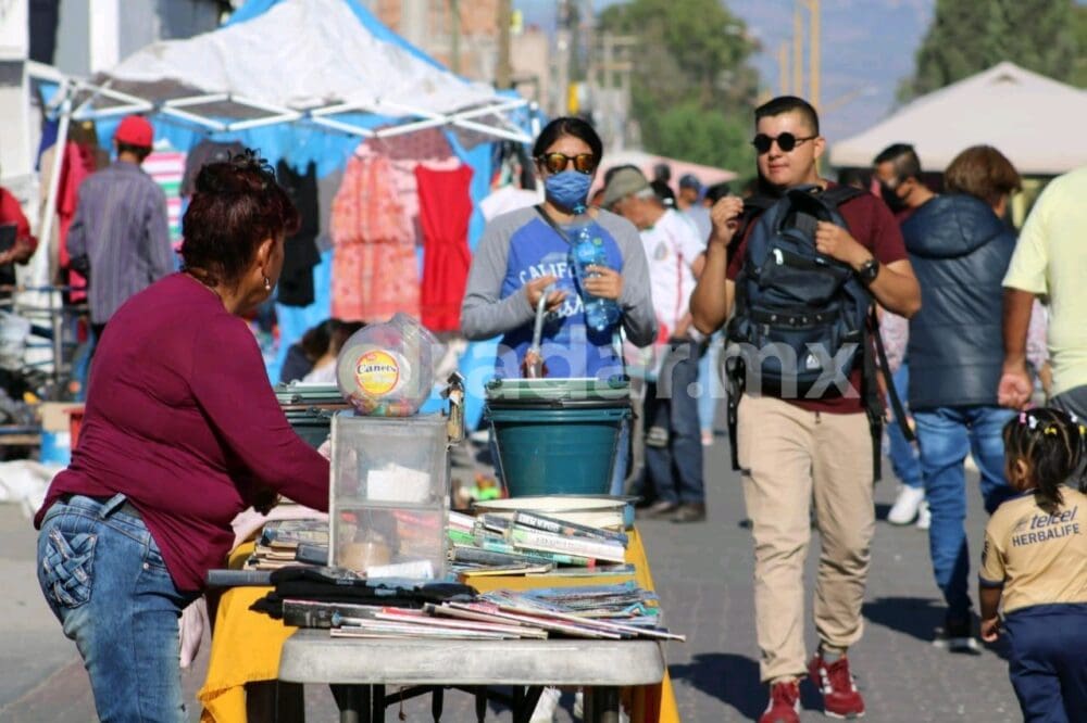 Luego del diálogo que realizaron personal de Comercio de la Capital y Comisión Estatal de Protección a Riesgos Sanitarios (COEPRIS), decenas de comerciantes lograron instalarse en la avenida Hernán Cortés, en el conocido tianguis de Las Vías o «El Rebote».