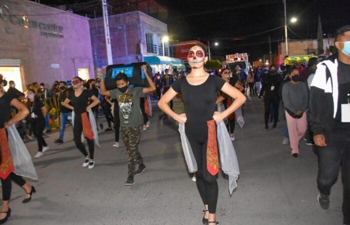 Danzas de huehues, de varitas y chichimecas, comparsas y carros alegóricos, formaron parte del desfile en el que participó activamente la ciudadanía y en el que estuvo la secretaria de Cultura (Secult), Martha Elizabeth Torres Méndez, acompañada del titular del Sistema Educativo Estatal Regular (SEER), Juan Carlos Torres Cedillo, y el titular de la Coordinación Estatal para el Fortalecimiento Institucional de los Municipios (Cefim), Emilio Eduardo Briones Valdez.