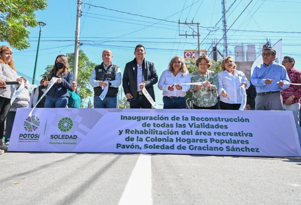 Con una inversión de 20 millones de pesos, el Gobernador de San Luis Potosí Ricardo Gallardo Cardona, entregó la obra “Reconstrucción de todas las vialidades y rehabilitación del área recreativa de la colonia Hogares Populares Pavón”, como parte del programa piloto que el Gobierno del cambio implementó para rescatar colonias completas y que al resultar todo un éxito será replicado con una bolsa de recursos por tres mil millones de pesos en la capital y Soledad de Graciano Sánchez.