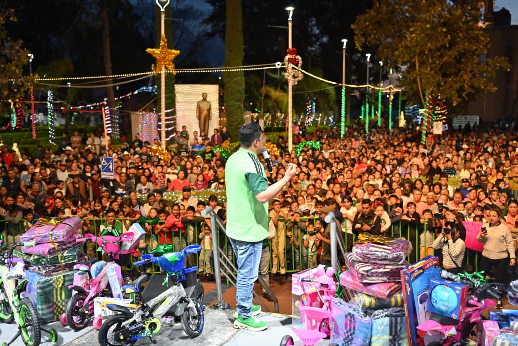 Entre un ambiente cálido y festivo, con luces, decoración navideña y la presencia de cientos de familias que acudieron para disfrutar el evento decembrino, Ricardo Gallardo destacó que estas acciones buscan fortalecer sin límites el espíritu comunitario y llevar bienestar a cada rincón del Estado, garantizando que ninguna familia quede fuera de este ambiente propio de la temporada.