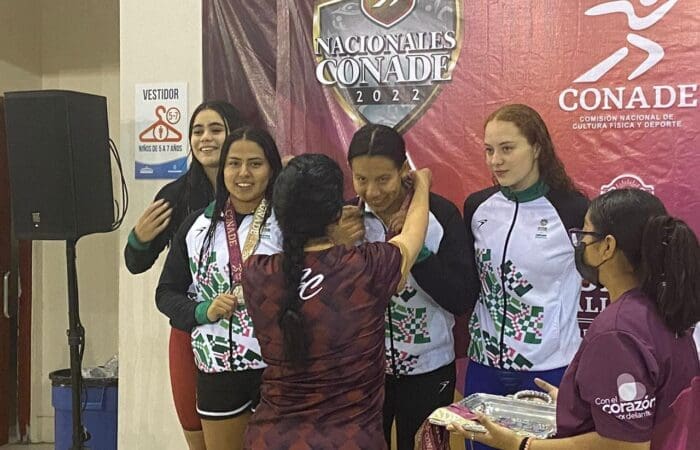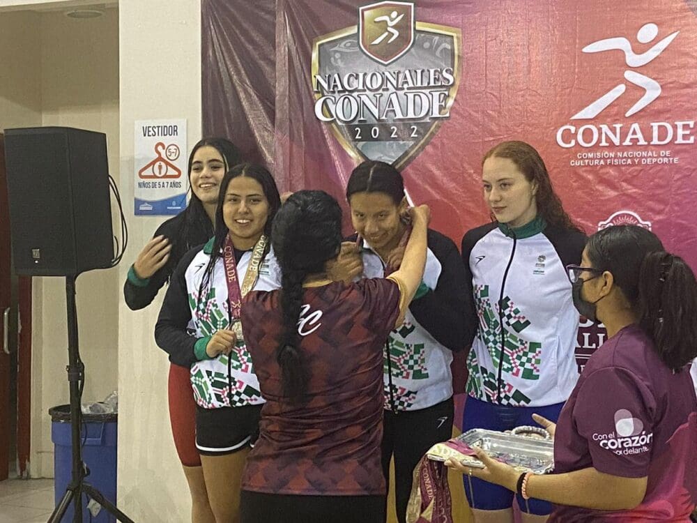 Asimismo, al equipo de potosinas conformado por Liseska Gallegos, Danna Pérez, Julianne Salvador y Karla de la Rosa, quienes ganaron medalla de plata, también en natación, en la prueba Relevo 4×200 en categoría libre femenil, mientras que la nadadora Fernanda Portillo rescató el bronce en la prueba de 100 metros pecho.