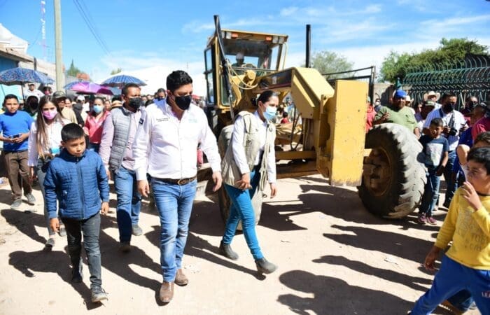 Las obras arrancadas por el joven Gobernador, incluyen la pavimentación con concreto hidráulico en las calles Aguascalientes y Vicente Guerrero, con un total de 4 mil 824 metros cuadrados, limpieza y desenraice de terreno, trazo y nivelación para vialidad, excavaciones, nivelaciones, colado, vibrado, reglado, curado, banqueta, compactado y limpieza final de las obras.