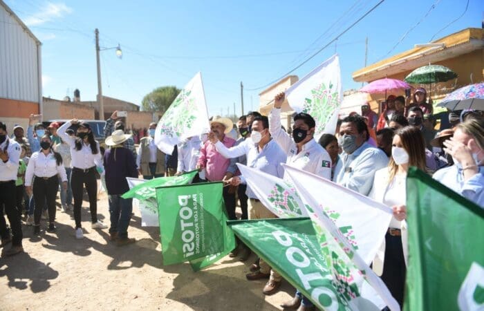 Con una inversión de 5 millones 459 pesos, el Gobernador del Estado José Ricardo Gallardo Cardona, dio el banderazo de arranque a la pavimentación con concreto hidráulico de las calles Aguascalientes y Vicente Guerrero en la localidad Dulce Grande en Villa de Ramos, obras de gran alcance social que benefician a cerca de 6 mil personas y forman parte de las acciones en los primeros 100 días de trabajo de la administración estatal.