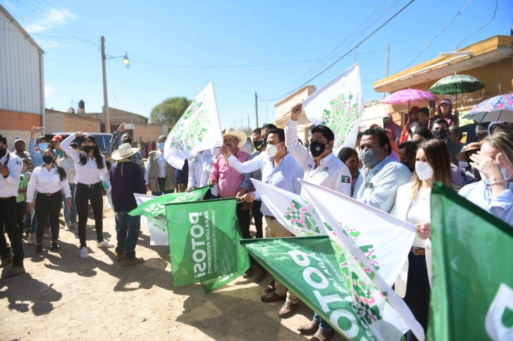 Con una inversión de 5 millones 459 pesos, el Gobernador del Estado José Ricardo Gallardo Cardona, dio el banderazo de arranque a la pavimentación con concreto hidráulico de las calles Aguascalientes y Vicente Guerrero en la localidad Dulce Grande en Villa de Ramos, obras de gran alcance social que benefician a cerca de 6 mil personas y forman parte de las acciones en los primeros 100 días de trabajo de la administración estatal.