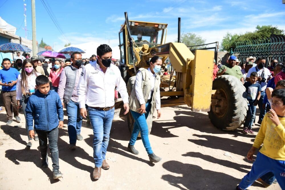 Las obras arrancadas por el joven Gobernador, incluyen la pavimentación con concreto hidráulico en las calles Aguascalientes y Vicente Guerrero, con un total de 4 mil 824 metros cuadrados, limpieza y desenraice de terreno, trazo y nivelación para vialidad, excavaciones, nivelaciones, colado, vibrado, reglado, curado, banqueta, compactado y limpieza final de las obras.