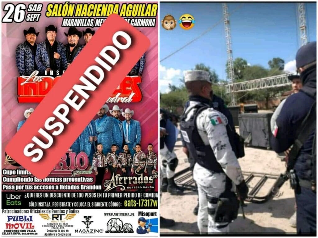 Por fotuna, la Guardia Nacional tomó cartas en el asunto y acudió al Salón Hacienda Aguilar, donde paralizó lo que sería un mega baile, ante la inesperada reacción de los organizadores.