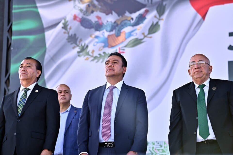 En su discurso, el funcionario estatal, afirmó que para honrar al lábaro patrio y su grandeza, dijo, que es necesario ser parte de la construcción de un México fuerte y democrático, como lo ha definido el Gobierno del cambio, por lo que a las niñas y los niños corresponde prepararse para los retos del futuro; respetar a sus madres, padres, maestras, maestros y compañeros.