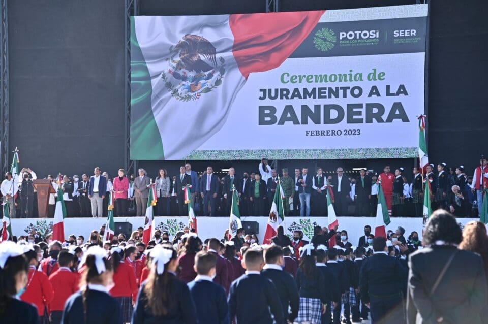 En el marco de la conmemoración del Día de la Bandera, que se celebra el 24 de febrero, el secretario general de Gobierno, J. Guadalupe Torres Sánchez, en representación del Gobernador de San Luis Potosí, Ricardo Gallardo Cardona, encabezó el acto protocolario de juramento al lábaro patrio de las y los alumnos de tercer grado de primaria de las escuelas oficiales y particulares incorporadas al Sistema Educativo Estatal Regular (SEER).