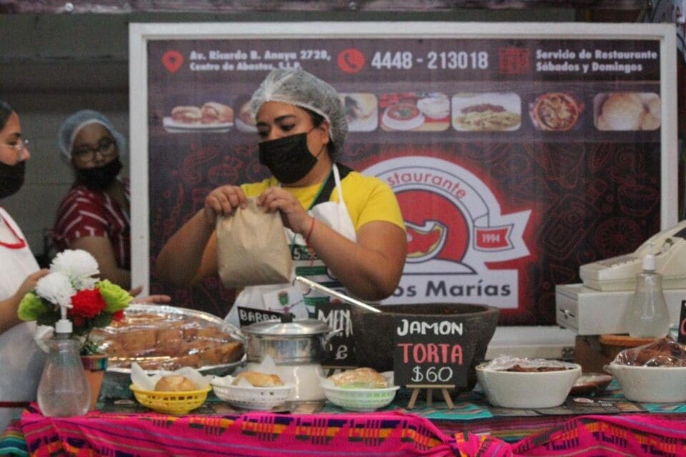 En la muestra podrán encontrar las gringas y volcanes de Matehuala; chamorro, conejo al pastor y codorniz de Salinas de Hidalgo; enchiladas, bocoles y migadas de Tamazunchale; las carnitas de puerco, tamales, mole rojo, barbacoa y gorditas de horno, además de dulce de membrillo y, miel de tuna de Villa de Reyes.