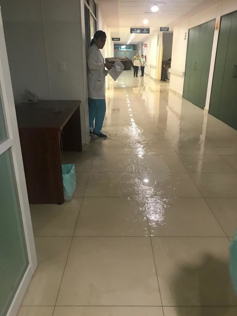 A través de imágenes, el día de ayer, se mostró como es que el agua llegó al área de urgencia de dicho hospital, específicamente en la clínica 2, donde los pasillos albergaron el agua escurridiza, donde era incontrolable, pero sobre todo, increíble que sucediera, después de haber sido rehabilitado.