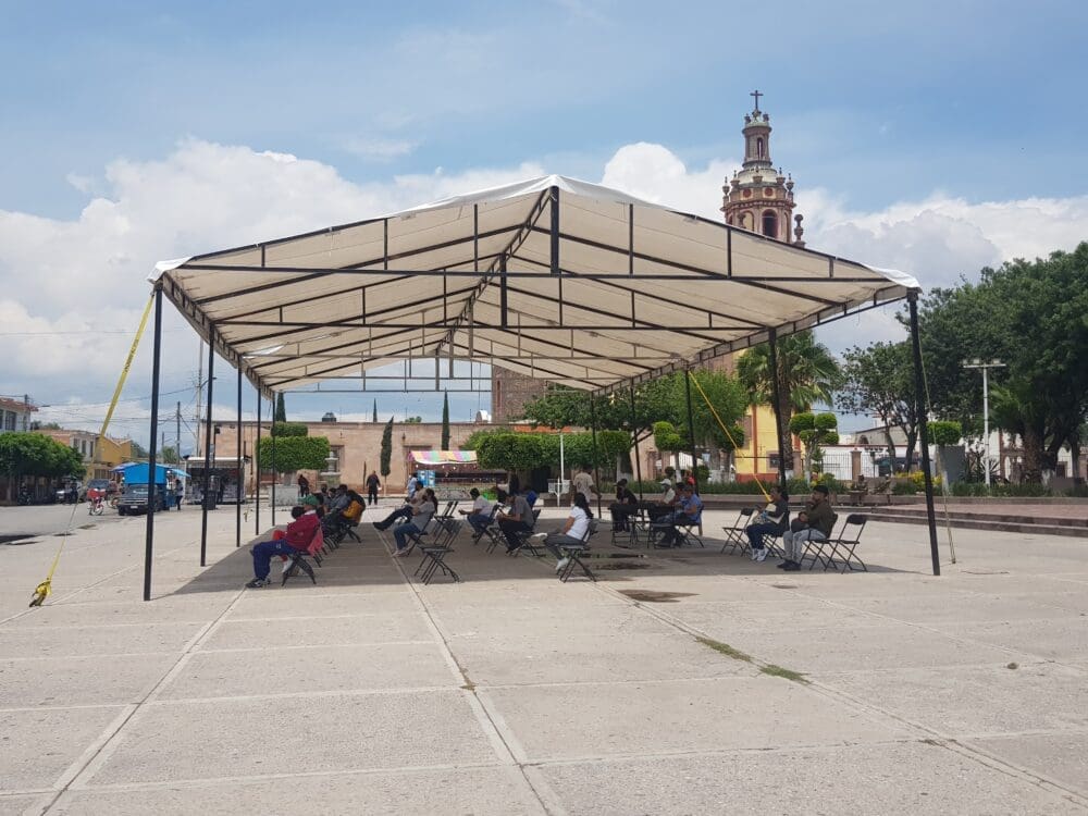 De la misma manera, en el municipio de Soledad, los dos centros de vacunación, en la escuela secundaria a la entrada del municipio por la Carr. a Matehuala y la primaria en la plaza principal, también contemplan máximo una fila de 10 personas.