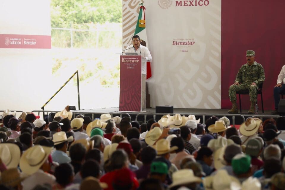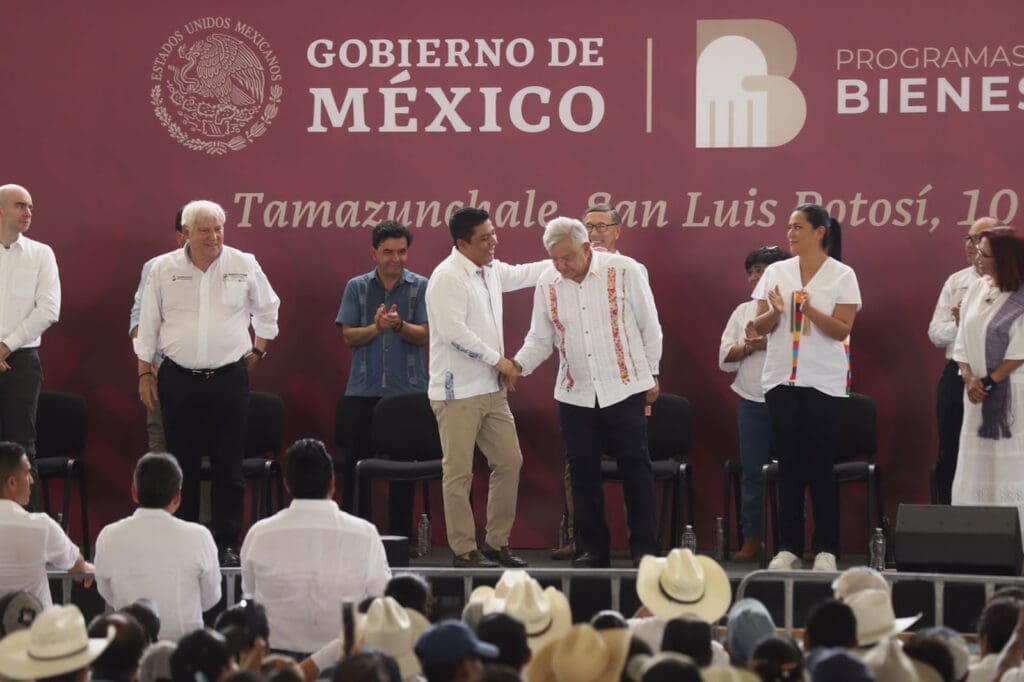 Ante cientos de habitantes de la región Huasteca, quienes demostraron su agradecimiento y cariño a ambos mandatarios, Gallardo Cardona destacó que, desde el inicio del Gobierno del cambio, se ha devuelto al pueblo potosino lo que le corresponde, lo que saqueaba la herencia maldita, con programas sociales que mejoran el bienestar de las familias de todos los rincones de la Entidad y con obras que las acercan al desarrollo del que se les privó por décadas.