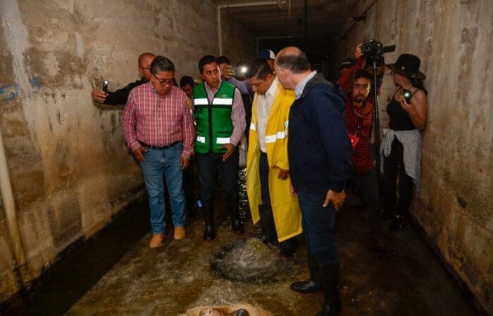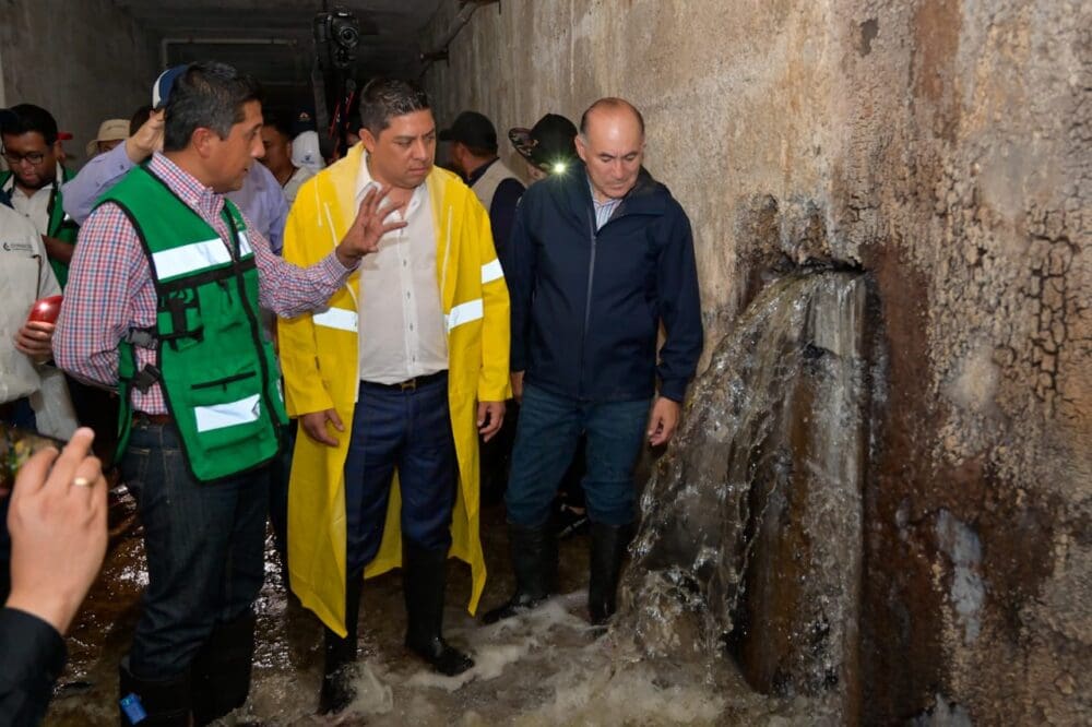 Al recorrido acudieron funcionarios estatales de la Comisión Estatal del Agua (CEA), y del Interapas, así como directivos de la empresa concesionaria Aquos.