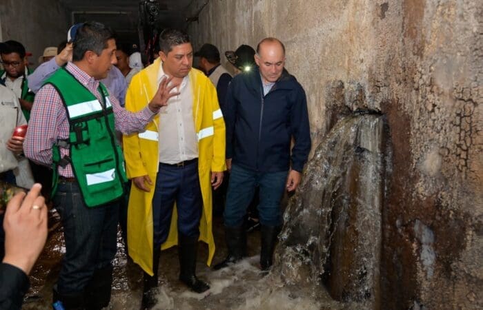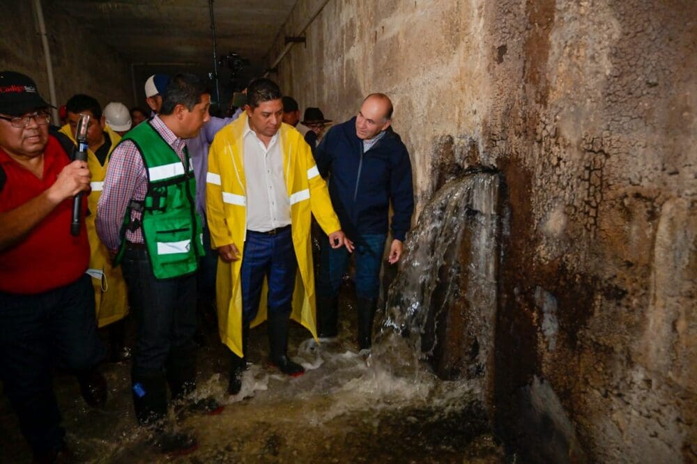 Acompañado por el alcalde y presidente de la junta de Gobierno del organismo operador de agua Interapas, Enrique Galindo Ceballos, el Mandatario Estatal anunció que el Gobierno del cambio apoyará al ayuntamiento capitalino que se comprometió a diseñar un plan emergente para el aprovechamiento de agua en los pozos existentes, incluida la detección de pozos clandestinos, medida que celebró el Gobernador.
