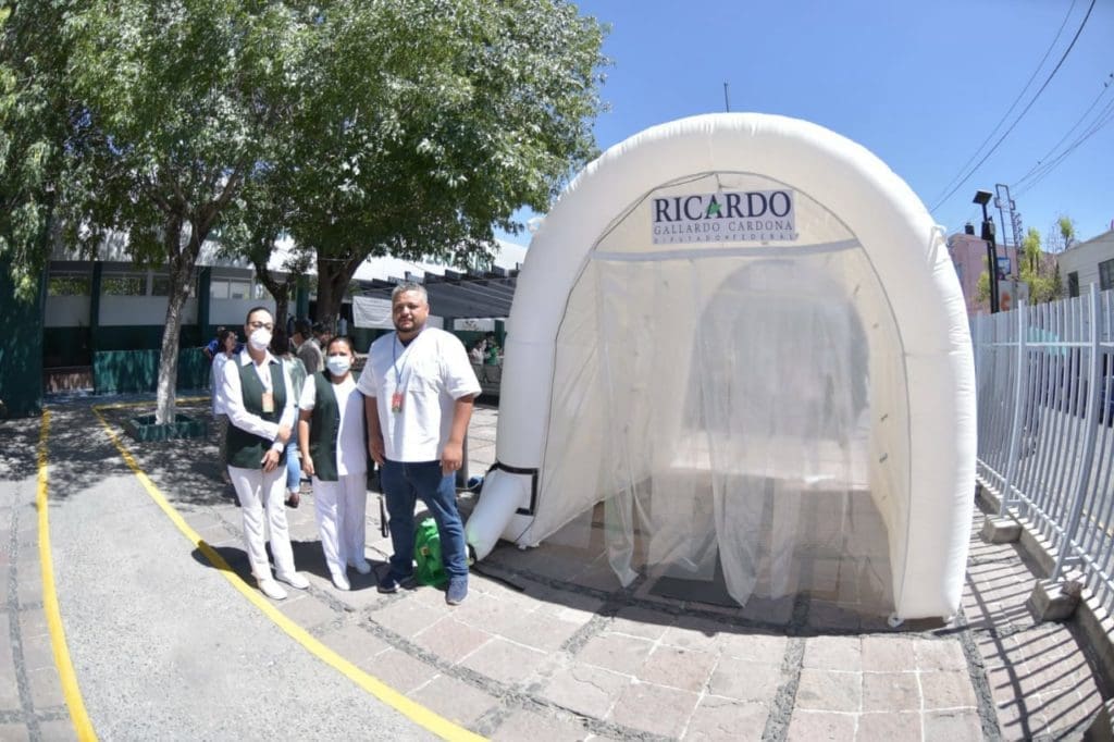 Este día, la clínica #02 del Instituto Mexicano del Seguro Social (IMSS), que se encuentra ubicada en avenida Benigno Arriaga, recibió como donación, un tercer túnel sanitizante por parte del diputado federal del PVEM, Ricardo Gallardo Cardona.
