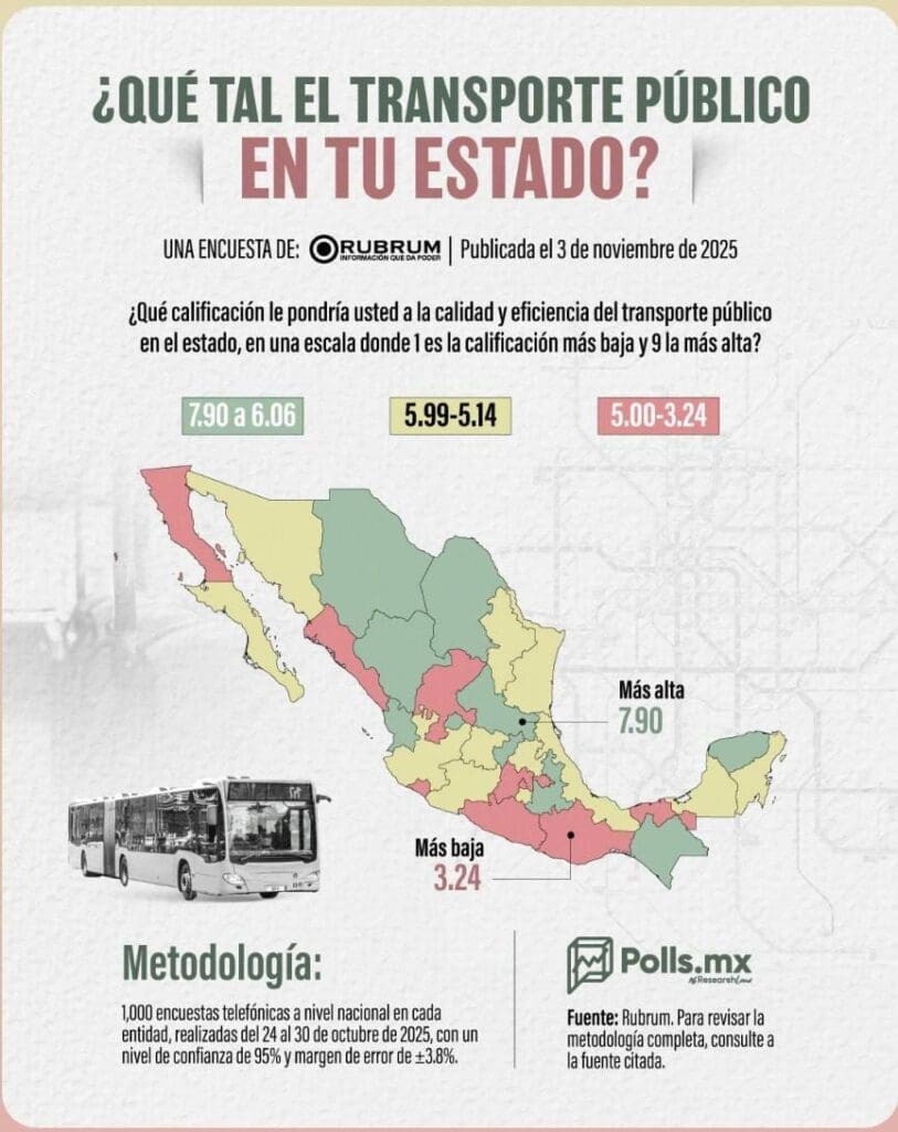 De acuerdo con la encuesta ¿Que tal el transporte público en tu Estado?, de polls.mx, este resultado refleja una percepción ciudadana muy positiva respecto al servicio de transporte en la entidad.