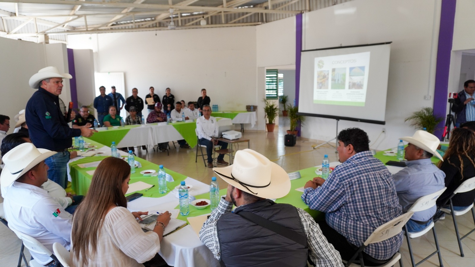 La Secretaría de Desarrollo Agropecuario y Recursos Hidráulicos (Sedarh), presentó ante presidentes municipales, la amplia cartera de programas y apoyo del Gobierno del Estado para las y los productores agropecuarios, que incluyen paquetes tecnológicos, maquinaria y equipamiento, así como mejoramiento genético para ganaderos.