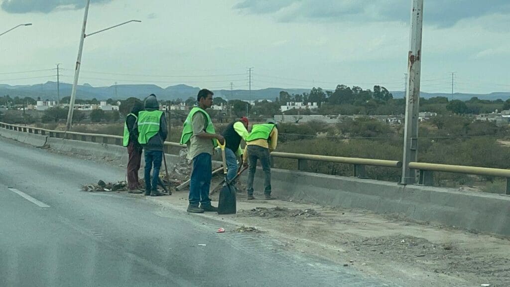 La cuadrilla de trabajadores lucía muy enjundiosa, realizando reencarpetamiento de los puentes de este tramo, casi por la carretera a Zacatecas.
