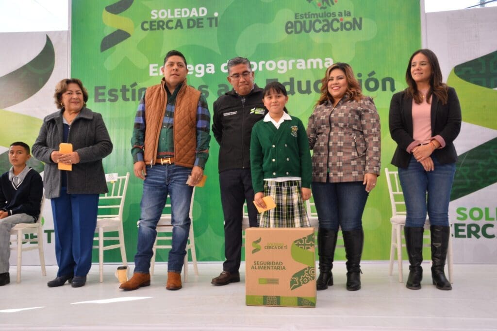 En un acto de reconocimiento al esfuerzo y dedicación de la niñez soledense, y con la honorífica presencia del Gobernador del Estado, Ricardo Gallardo Cardona; este lunes, Juan Manuel Navarro Muñiz, Presidente municipal de Soledad de Graciano Sánchez, relanzó el programa social “Estímulos a la Educación”, implementado en administraciones pasadas y fortalecido por el actual Gobierno Municipal, que volvió con más ímpetu debido a la entrega de un paquete de productos básicos y un apoyo económico para estudiantes destacados.