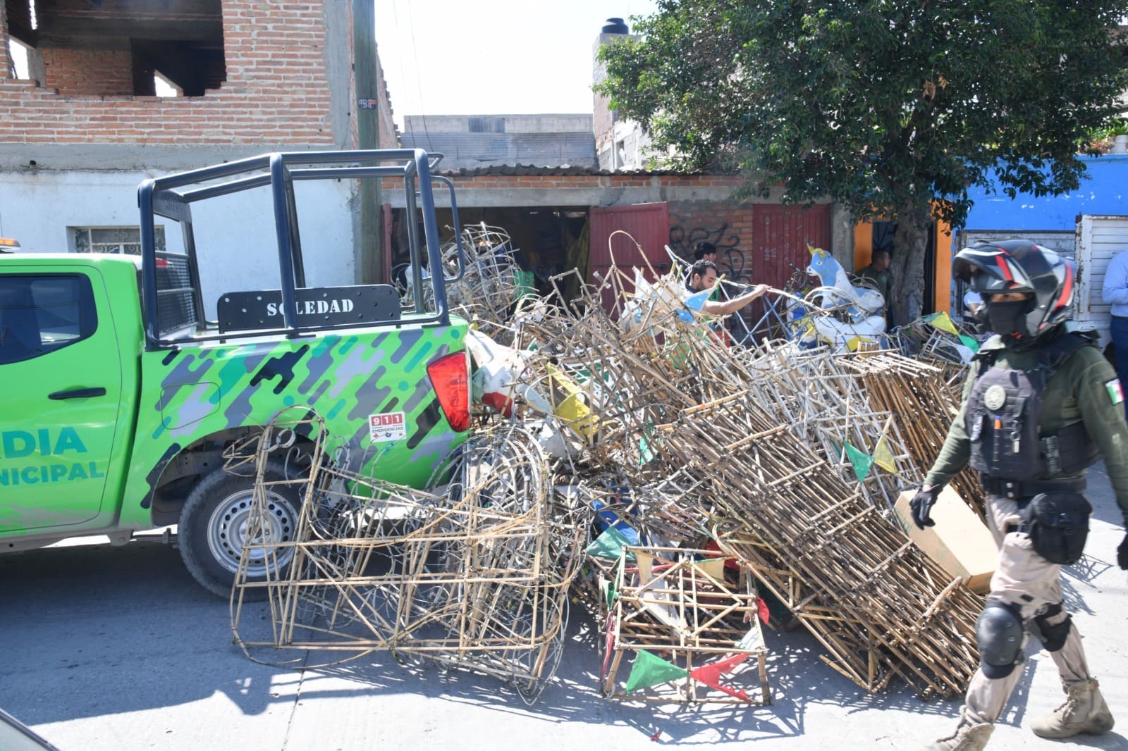 Derivado de la intervención, Protección Civil Municipal y Protección Civil Estatal clausuraron el lugar, y aseguraron aproximadamente 30 kilogramos de pirotecnia terminada, 15 kilogramos de pólvora y alrededor de 100 kilogramos de estructura y material para fabricación que estaban almacenados en un taller clandestino dentro, sin las medidas de seguridad adecuadas, ni permisos correspondientes. “Se hace un llamado ante la gravedad del problema, ya que representa un riesgo para la población y el inmueble carecía de permisos”, destacó Bravo Galicia.