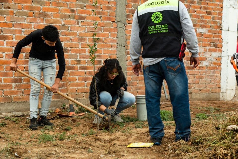 Con la intención de fomentar la producción de oxígeno, impulsar la purificación del aire, fomentar los suelos fértiles, y evitar la erosión, el Ayuntamiento de Soledad de Graciano Sánchez, encabezado por la alcaldesa Leonor Noyola Cervantes a través de la Coordinación de Ecología a cargo de Dolores Herminia Juárez Herrera, continúa con el plan de reforestación en las diferentes colonias del municipio.