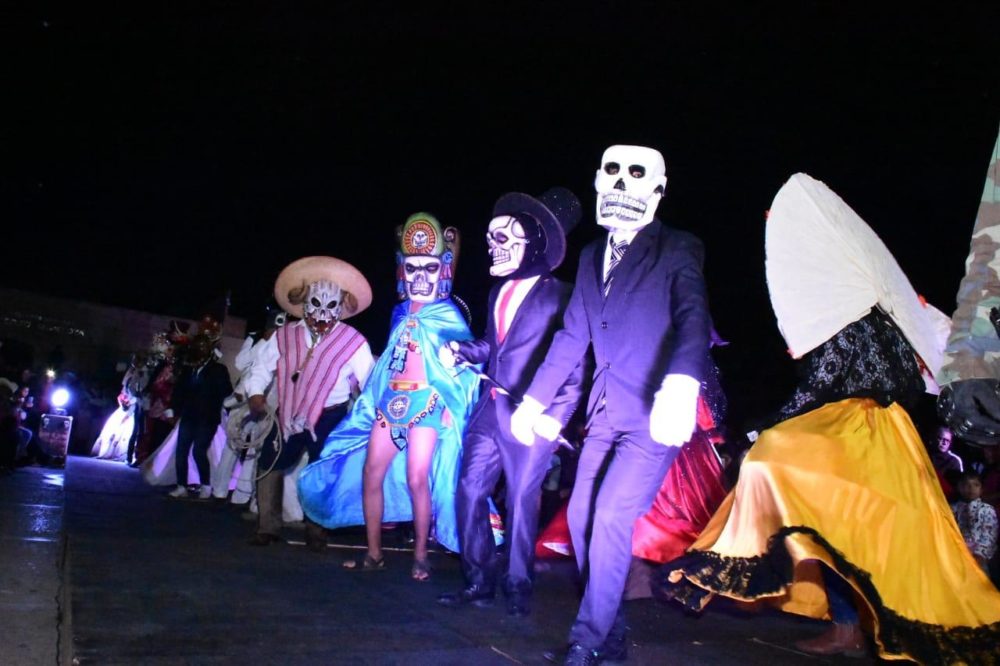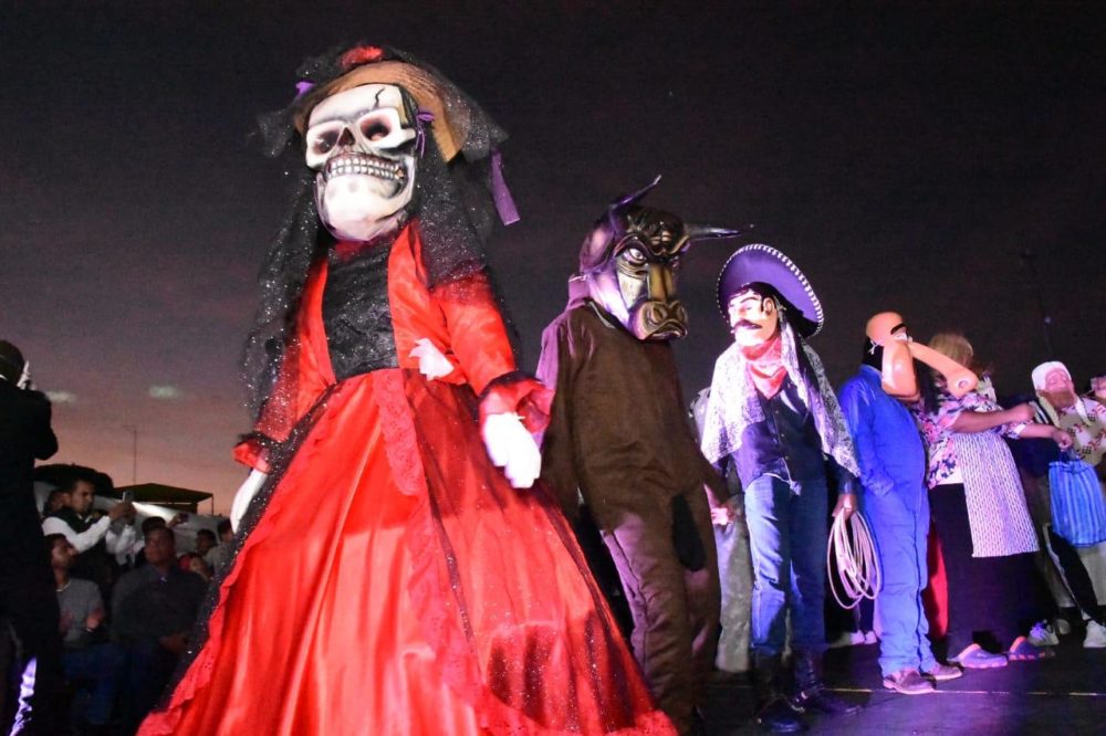 Esta noche, una gran multitud de personas disfrutaron de la presentacion de la comparsa «Guerreros Huastecos«, originaria del municipio de Tanquián de Escobedo, como parte del Festival de Día de Muertos, en la plaza principal de Soledad de Graciano Sánchez.