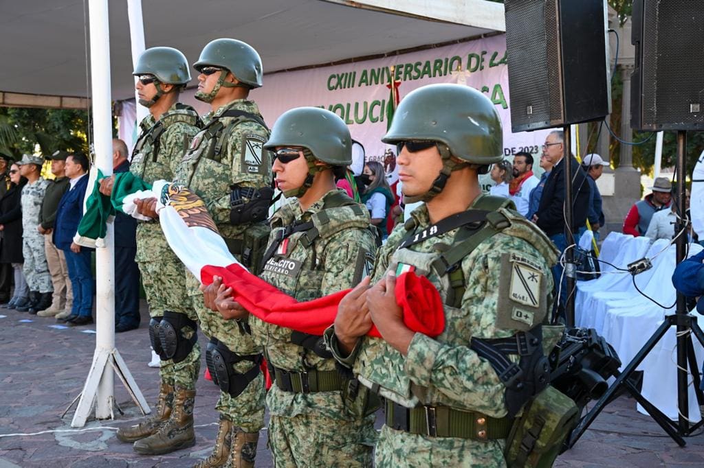 El evento inició con un acto protocolario de saludo al lábaro patrio en la Plaza principal, con la presencia de elementos del 40 Batallón de Infantería y estudiantes de educación básica, en donde se recordó la lucha de las y los personajes de la Revolución, que dio paso a la libertad y el respeto a los derechos de grupos vulnerables.