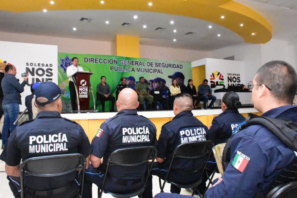 Ante la presencia de mandos policiacos, oficiales de Fuerzas Municipales y Policía Vial, integrantes de la Guardia Nacional, funcionarios municipales e invitados especiales, el Ingeniero Hernández Villafuerte, señaló enfático que la paz social es fundamental para la sana convivencia entre un pueblo “y es justamente lo que estamos haciendo en Soledad”.