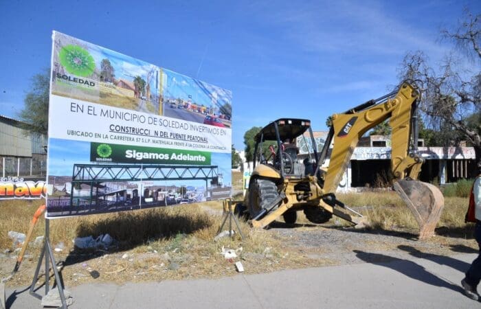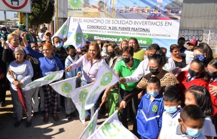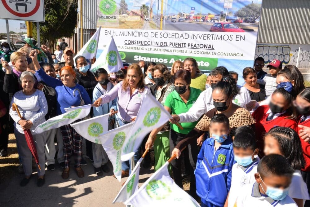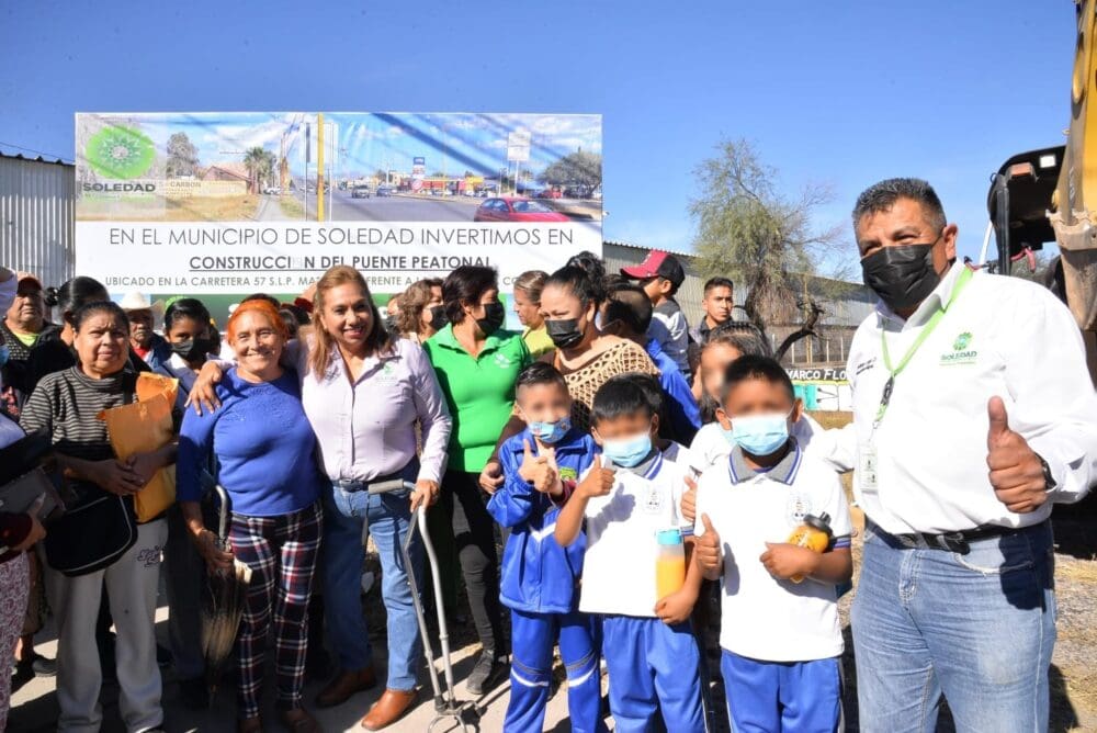 La alcaldesa de Soledad de Graciano Sánchez, Leonor Noyola Cervantes, acompañada de la Presidenta del Sistema Municipal DIF, María del Pilar Cardona Reyna, entre otros integrantes del gabinete municipal, dieron arranque a los trabajos de construcción del puente peatonal ubicado en la carretera federal 57, frente a la colonia “La Constancia” en el cual, se invertirán dos millones de pesos provenientes del Fondo de Fortalecimiento Municipal.