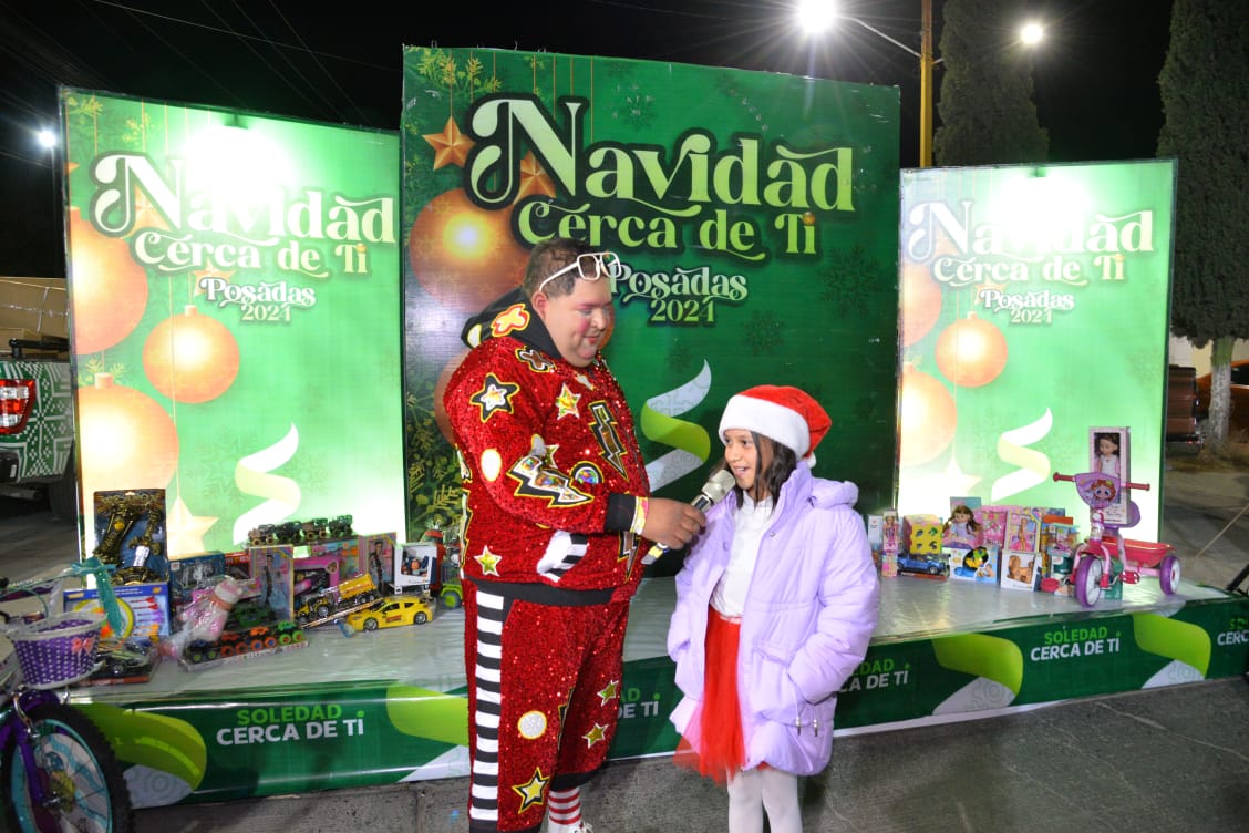 Con un mensaje de paz y prosperidad para todas las familias, el Alcalde de Soledad de Graciano Sánchez, Juan Manuel Navarro Muñiz, continúa llevando alegría a niños y niñas a través de las tradicionales Posadas Navideñas; este martes, el edil realizó recorridos por diversas colonias, donde convivió con las y los vecinos y repartió sonrisas y esperanza, además de invitar a toda la población a ser parte del cierre navideño en la Plaza principal, este viernes.