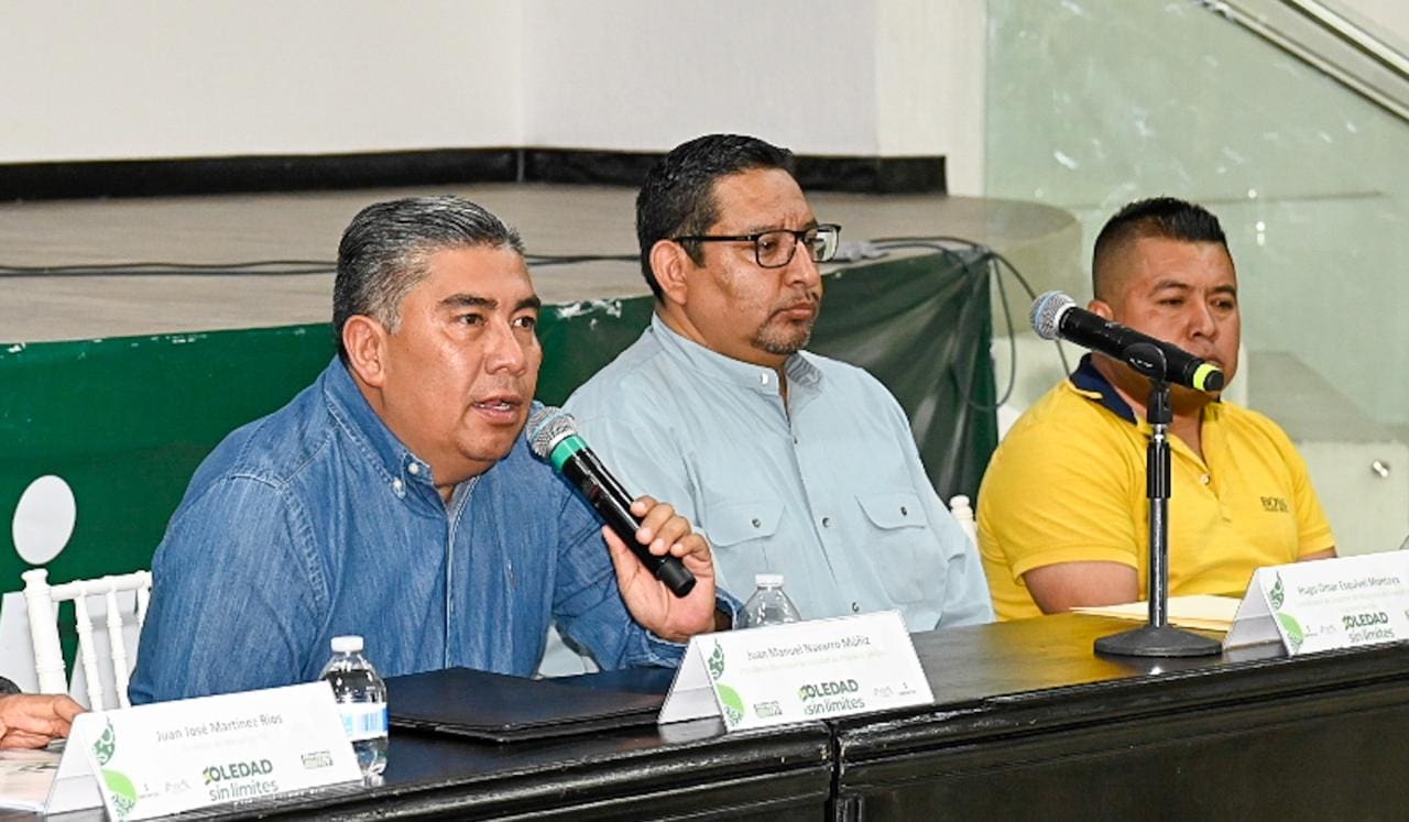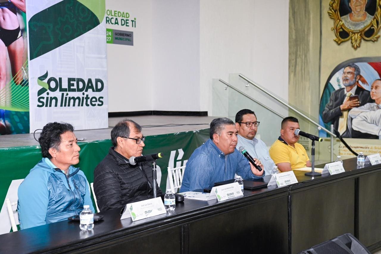 Juan Manuel Navarro Muñiz, Alcalde de Soledad de Graciano Sánchez, encabezó la presentación oficial de la playera y medalla del Marathón TV 2025, en una rueda de prensa que se realizó en el Auditorio municipal; uno de los eventos atléticos más importantes del país, que se llevará a cabo este fin de semana en el Parque Tangamanga II, donde se destacó la calidad internacional de esta competencia que atraerá a corredores de distintos países de Centro y Sudamérica.