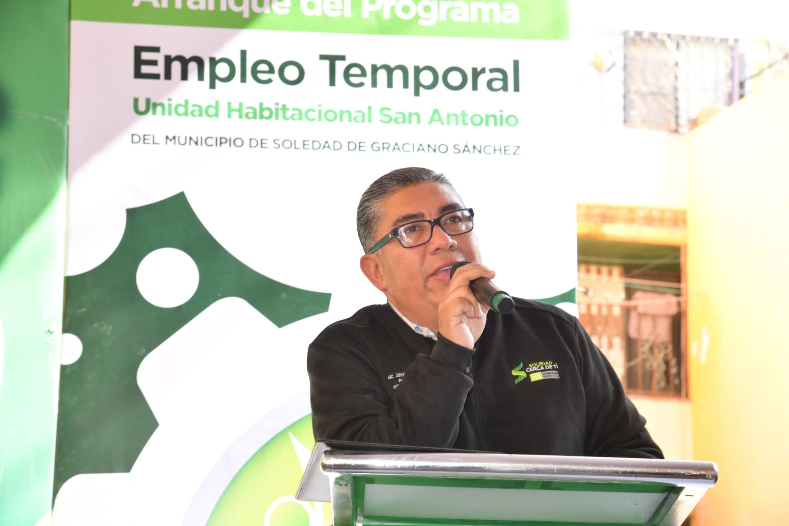 Juan Manuel Navarro Muñiz, Alcalde de Soledad de Graciano Sánchez, dio el banderazo de arranque a la segunda edición del programa “Empleo Temporal” en la colonia Unidad Habitacional San Antonio, con el inicio de trabajos de rehabilitación, alumbrado y pintura en más de 20 condominios de la zona, significando una inversión de casi 700 mil pesos y un beneficio directo e indirecto a más de 12 mil habitantes, pero sobre todo, un fuente de ingresos económicos para casi 30 personas de todas las edades que conforman las cuadrillas que se encargaran de renovar la imagen urbana de las viviendas.