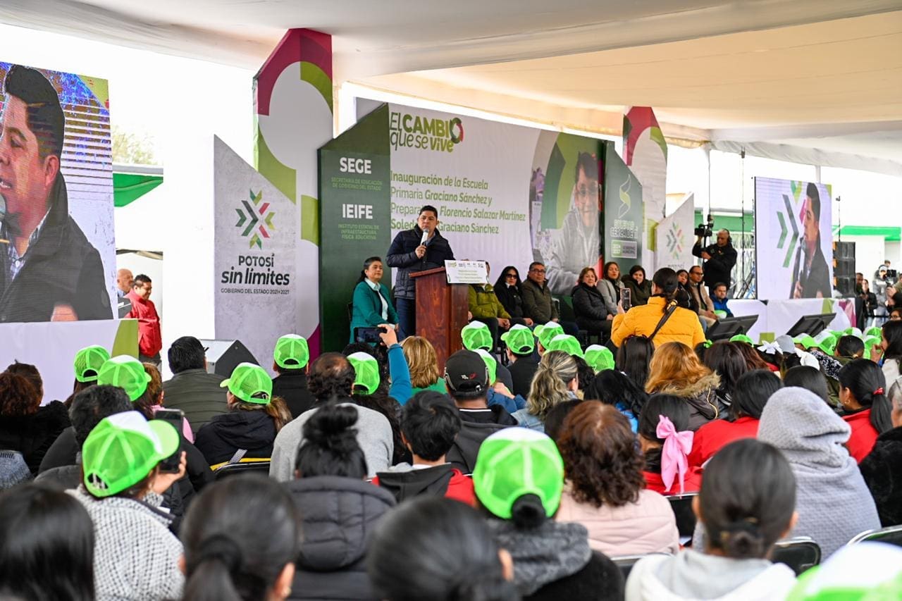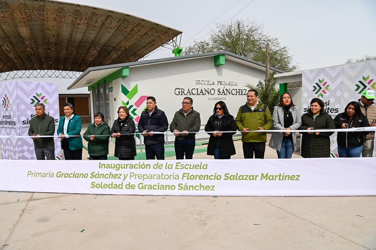 El Presidente municipal, Juan Manuel Navarro Muñiz celebró y reconoció el impulso del Gobernador del Estado, Ricardo Gallardo Cardona, en la garantía de educación de calidad y de escuelas modernas, al entregar la reconstrucción de la primaria «Graciano Sánchez» y la preparatoria «Florencio Salazar Martínez», en la comunidad rural de Enrique Estrada que hoy beneficia a caso 300 estudiantes de Soledad de Graciano Sánchez y les brinda dignidad educativa.