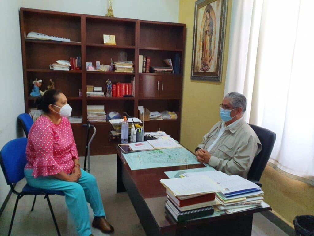 La alcaldesa electa de Soledad de Graciano Sánchez, Leonor Noyola Cervantes, sostuvo una reunión con el presbítero Gerardo Vaglienty Rivera, encargado de la parroquia local, con quien acordó fomentar la participación ciudadana para lograr transformaciones políticas y sociales del municipio.