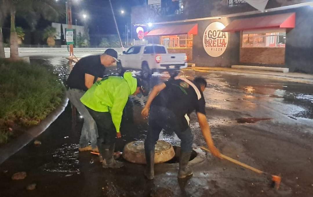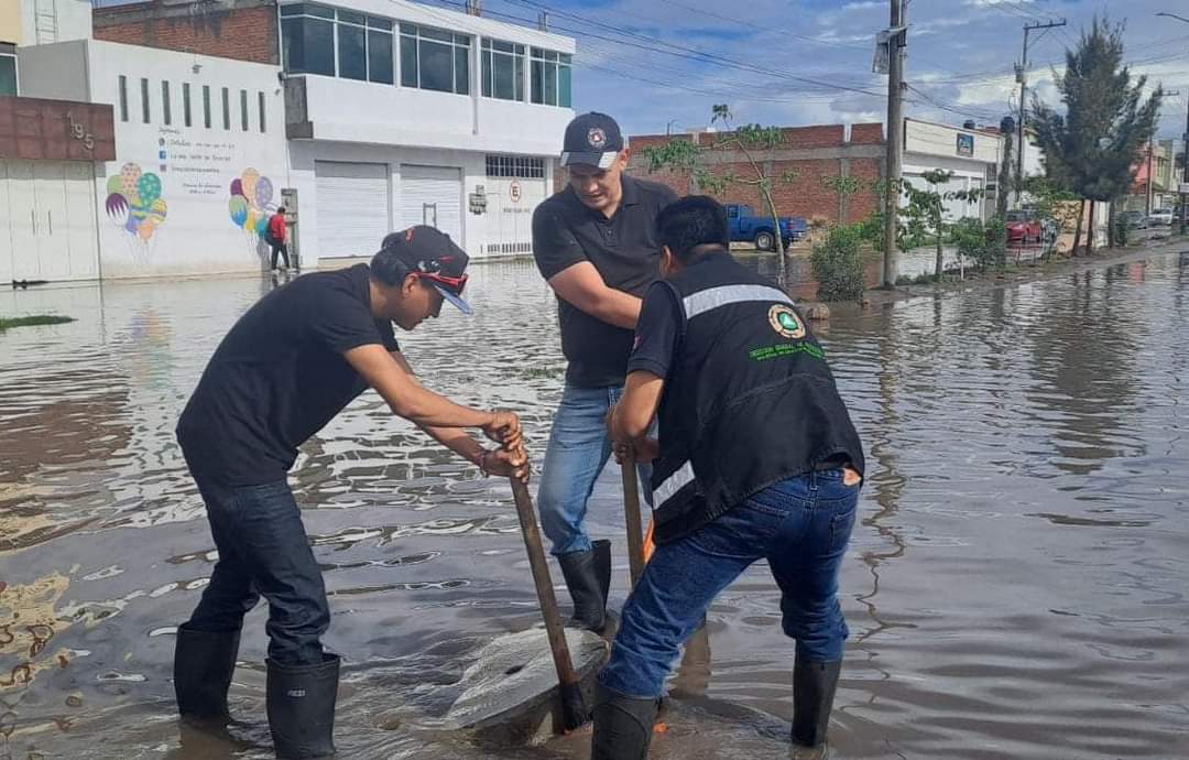 El funcionario municipal detalló que, se continúa trabajando en la limpieza general de residuos, basura y en el desfogue del agua pluvial acumulada en algunas zonas del municipio, incluyendo colonias como Cactus, La Sierra, Agaves, San Lorenzo, San Luis Uno, 21 de Marzo, Hacienda Los Morales, Rivas Guillén y otras áreas afectadas: “Se han encontrado drenajes colapsados, registros y descargas llenos de lodo y basura, así como una infraestructura añeja que impide el flujo adecuado del agua pluvial”, puntualizó.