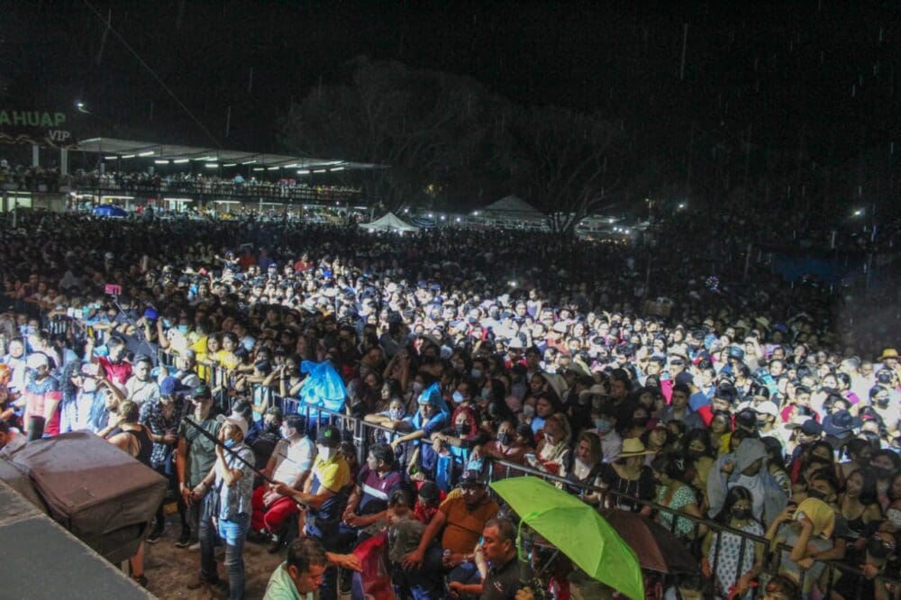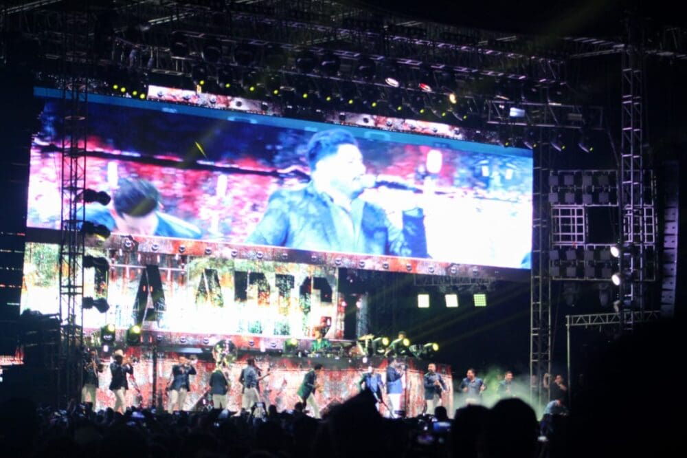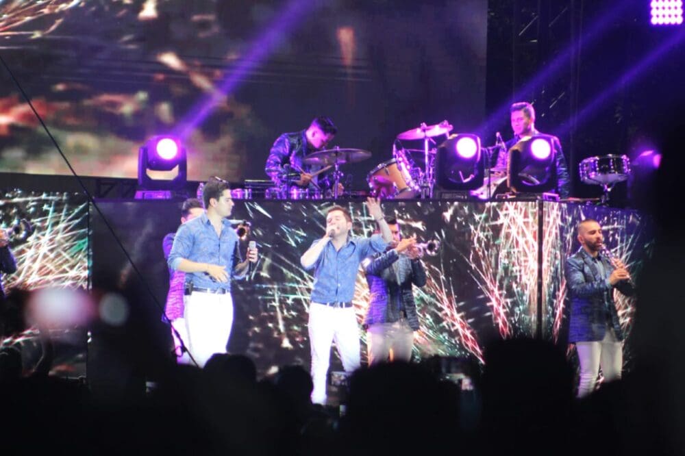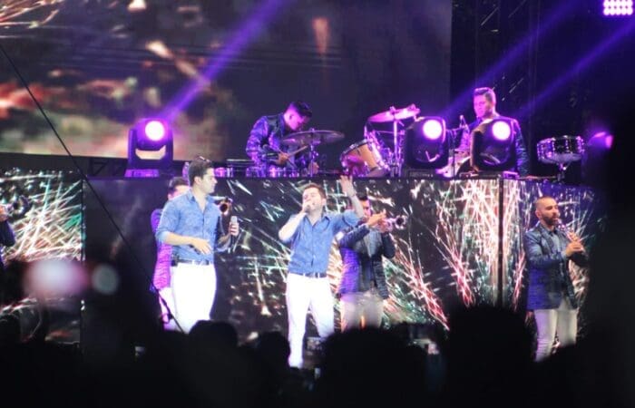 Fue poco antes de las once de la noche que la agrupación salió al escenario, donde a pesar de la lluvia no se movió de lugar un solo espectador, muchos de los cuales, desde temprana hora ya esperaban la presentación que resultó un éxito.