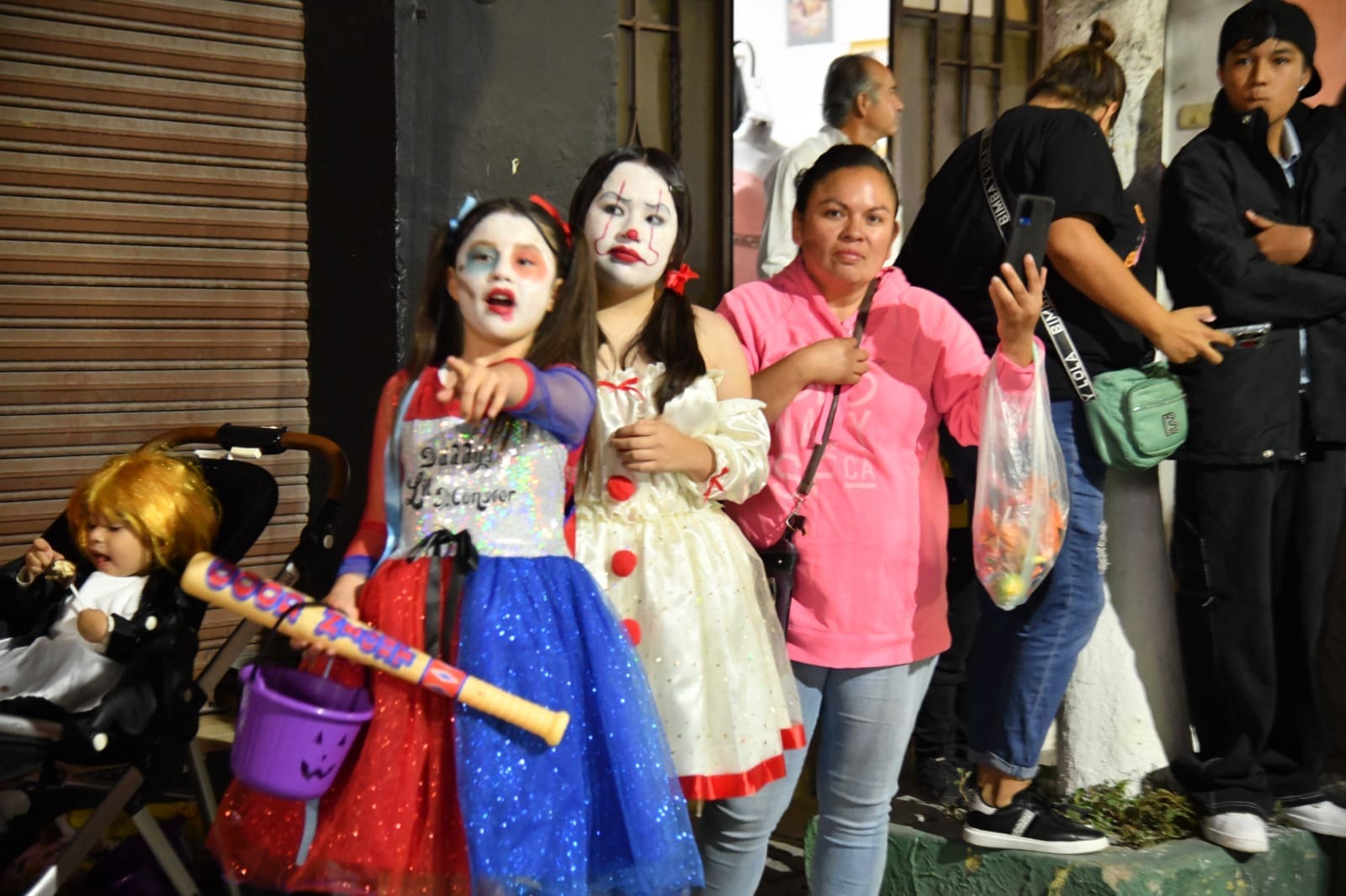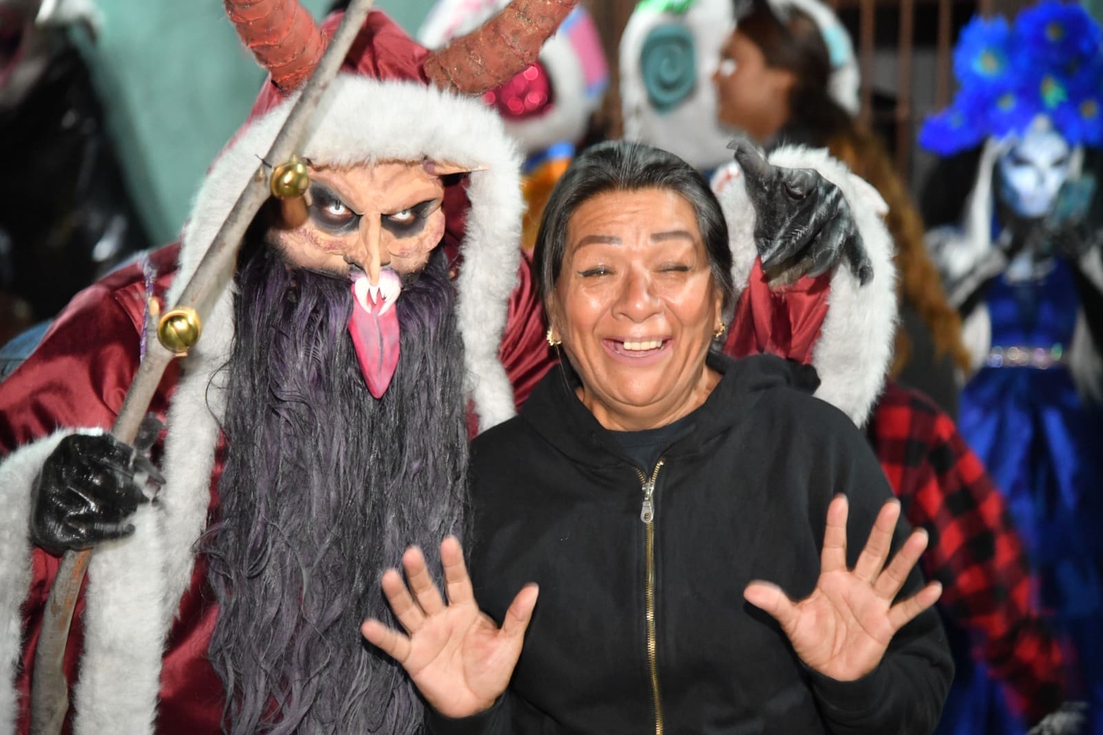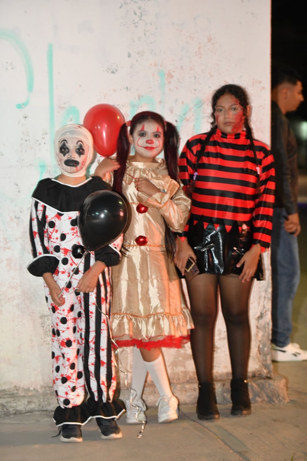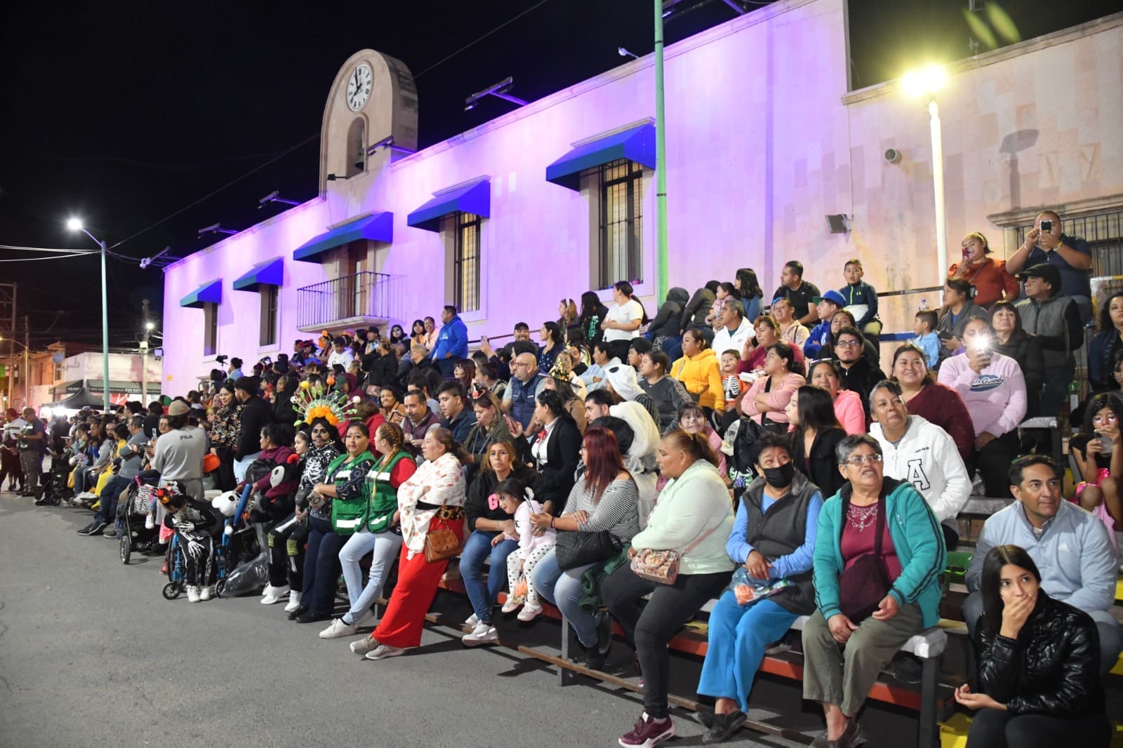 Desde las siete de la noche, el exterior de la Casa de Cultura se llenó de cientos de niños, niñas y personas caracterizadas de carniceros con sierras, seres post-apocalípticos ataviados con trajes de bioseguridad, diablos, zombies, payasos sangrientos, seres sin cabeza o descarnados, brujas, momias, catrines y criaturas terroríficas, que avanzaron lentamente en contingente hacia el Jardín principal, generando asombro y terror entre familias enteras que salieron a disfrutar del espectáculo, algunos con asombro, otros entre sustos y risa.
