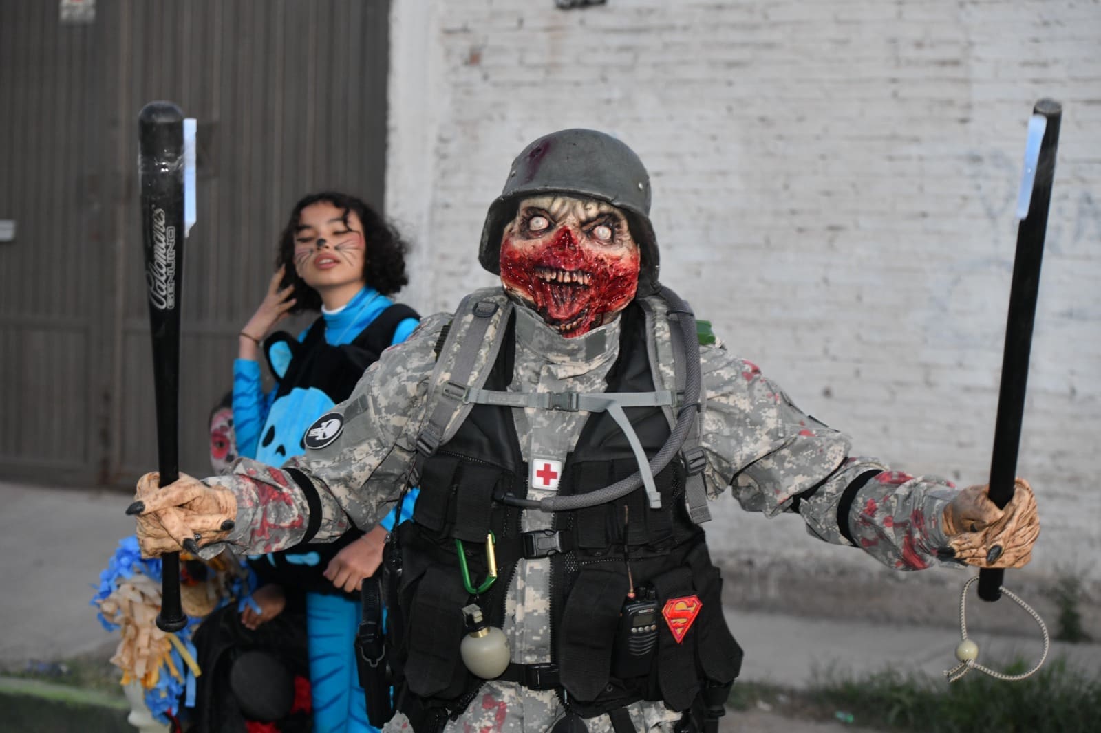 Algunos disfraces llamaron la atención por sus detalles minuciosos, como la “tarántula gigante” con una presa humana envuelta en su telaraña, un espantapájaros gigante y maligno que tomó la vida de su granjero vampiro, o el “El viejo del costal”, atuendo que según su creador pesaba más de 10 kilos, así como un krampus con maquillaje prostético y un soldado militar zombie.