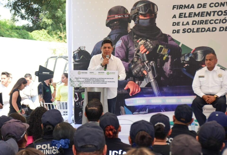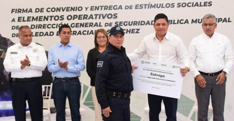 Luego de que el Gobernador del Estado, Ricardo Gallardo Cardona, anunció en las instalaciones de la Dirección General de Seguridad Pública Municipal de Soledad de Graciano Sánchez, el inicio de un programa de estímulos económicos de cinco mil pesos mensuales para 216 elementos operativos; policías beneficiarios reconocieron la importancia de este beneficio que reconoce su compromiso y esfuerzo en el desempeño de sus funciones y a favor del bien social.