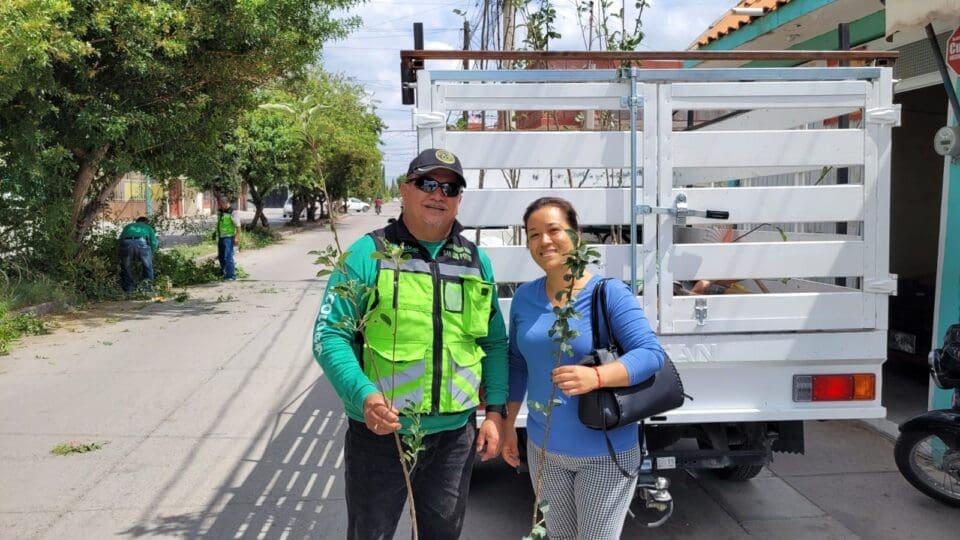 Posteriormente se visitó la colonia El Refugio, zona en la que también se entregó un importante número de árboles, además de colaborar en la limpieza de camellones, y poda de árboles, esto a petición de la ciudadanía quienes aseguraban que los arbustos bloqueaban la visibilidad para peatones y conductores que circulaban por la zona.