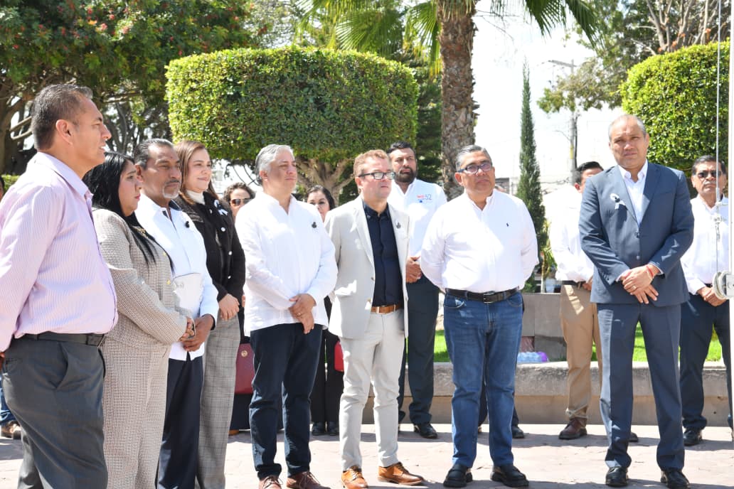 Durante el evento realizado en el Teatro y Centro Cultural «Doroteo Arango», autoridades estatales y federales entregaron la placa conmemorativa al edil, quien posteriormente, de manera simbólica, ondeó la bandera junto a representantes educativos antes de su izamiento en la Plaza Principal.