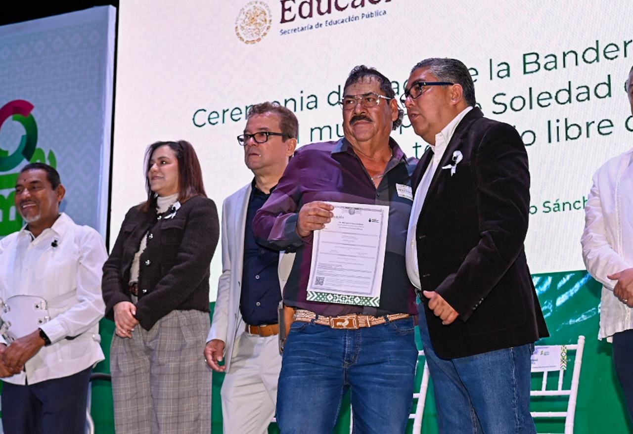 Por su parte, Francisco Lomelí Isaza, representante estatal de la Secretaría de Educación Pública, subrayó que la distinción responde al esfuerzo conjunto entre sociedad y autoridades de los tres niveles de gobierno para garantizar el acceso a la educación como un derecho fundamental. “Hoy, 13 de marzo de 2026, con profundo orgullo declaramos oficialmente a Soledad de Graciano Sánchez municipio libre de analfabetismo, convirtiéndose en el primero del estado en recibir esta distinción”, anunció, al señalar que este logro se apega a los estándares internacionales establecidos por la UNESCO.